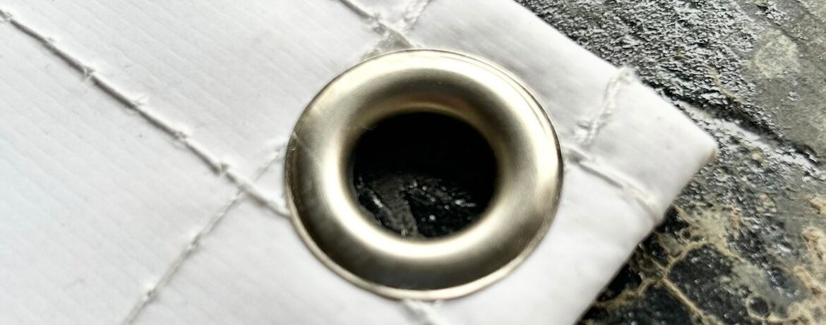 ターポリン生地は、屋外にも設置が可能な丈夫な生地の一つです。横断幕、応援幕、現場幕、養生シートなどにも使われます。